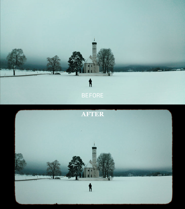 Drag and drop grain overlays inspired by 8mm, 16mm & 35mm film stock. Film gates created using real film scan for that authentic look.